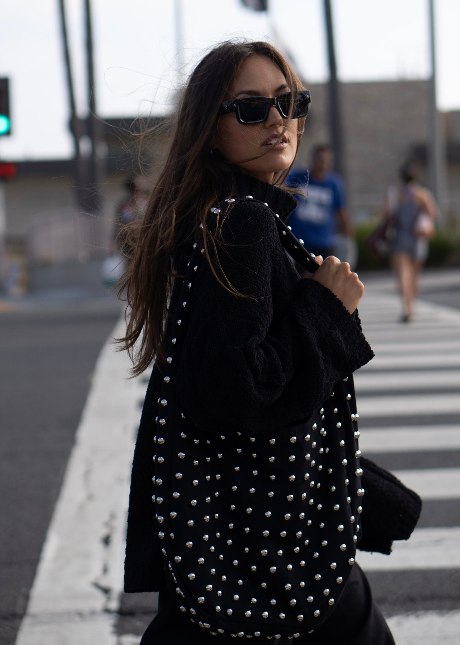 The bold dome studs scattered across the sturdy drill surface means this bag not only looks the part, but is also 100% sustainable.