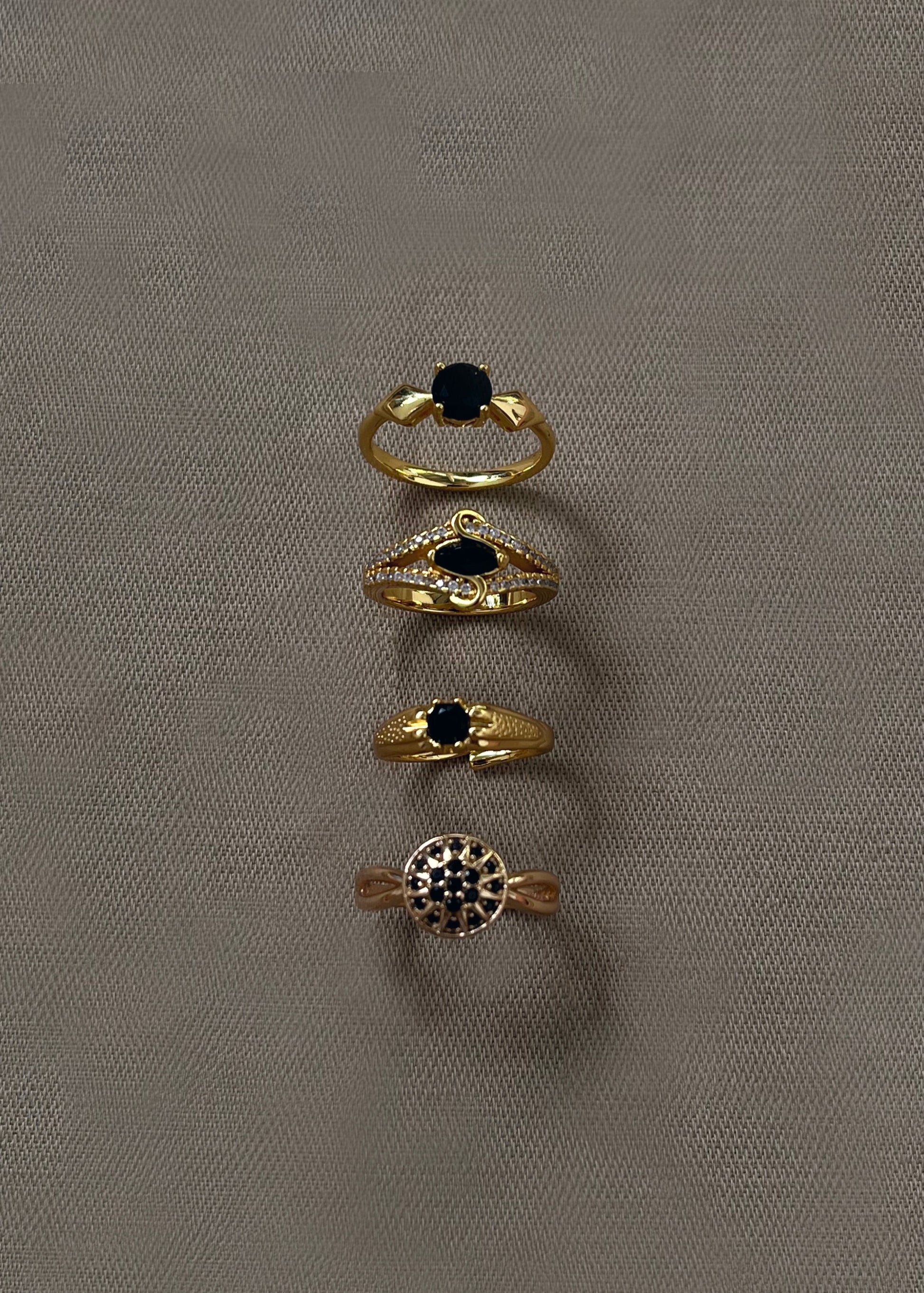 We see the gold curves amidst the cyrstals and adore that assymetrical break up, not to mention the eye shaped black stone in the middle, framed by the encrusted bands and intricate hollow vacancies surrounding.