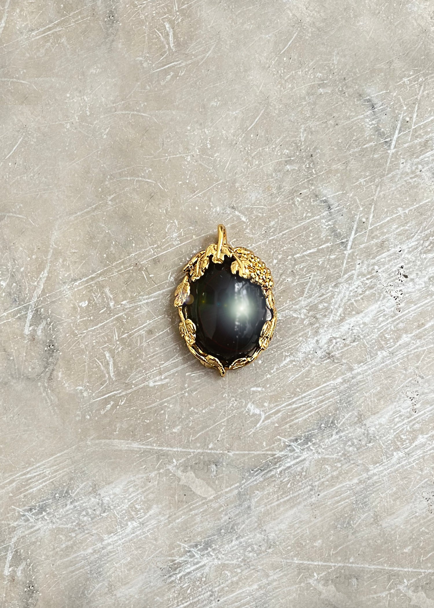The juxtuposition of the black onyx stone and the fine detailed golds has us lusting over this statement piece.
